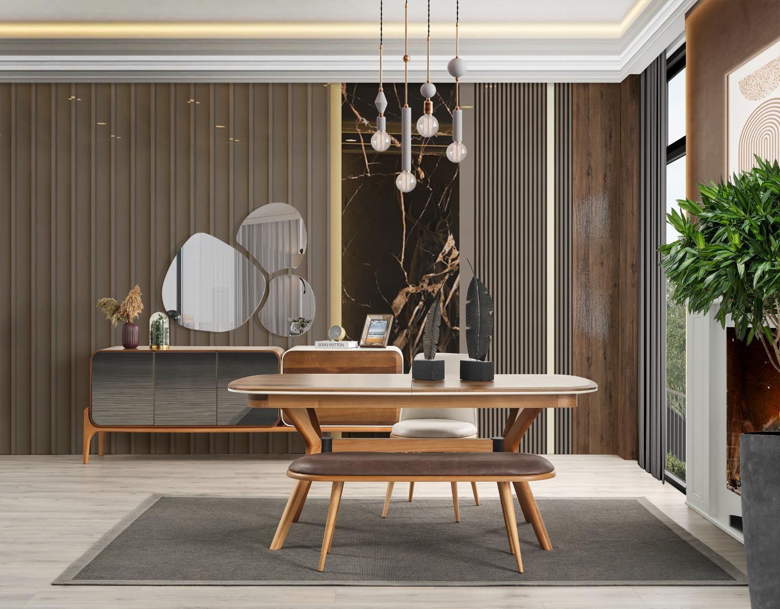 Tam bir uyum arayanlar için özel olarak tasarlanmış bu yemek odası seti, masa ve sandalyelerin yanı sıra, konsol veya vitrin gibi tamamlayıcı parçaları da içeriyor. Üstelik, kampanya ve indirim fırsatlarıyla sunulan bu yemek odası takımı sayesinde hem bütçenizi koruyabilir hem de hayalinizdeki yemek odasına kavuşabilirsiniz.